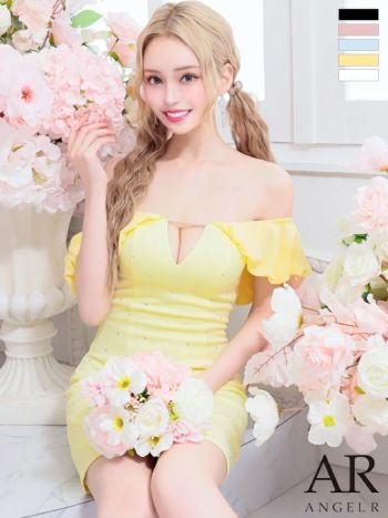 XSあり!CUTEなデザイン☆ 【Angel R/エンジェルアール】シフォン ビジュー ガーリー オープンバスト オフショルダー フリル タイトミニドレス (AR25801)