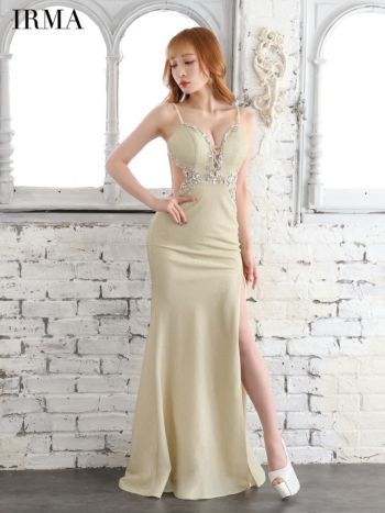 3. 【IRMA/イルマ】キャミソール ビジュー サイドシアー ワンカラー ラメ スリット タイトロングドレス (41528)