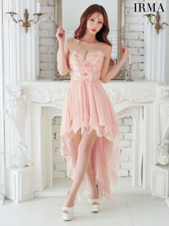 4. 【IRMA/イルマ】フラワー刺繍 バースデー ワンカラー シフォン ロングテールドレス (41626)