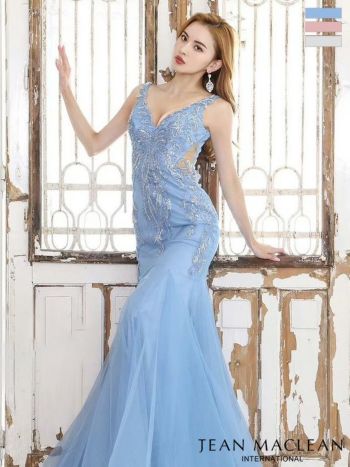 3. 【JEANMACLEAN/ジャンマクレーン】刺繍 ノースリーブ バストサイドシアー マーメイド ロングドレス (41535)