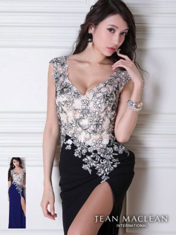 LaLaTulleが選ぶ優雅さ溢れる大人の女性へ格上げするキャバドレス♪ 【JEANMACLEAN/ジャンマクレーン】フラワーレース刺繍 タイトロングドレス