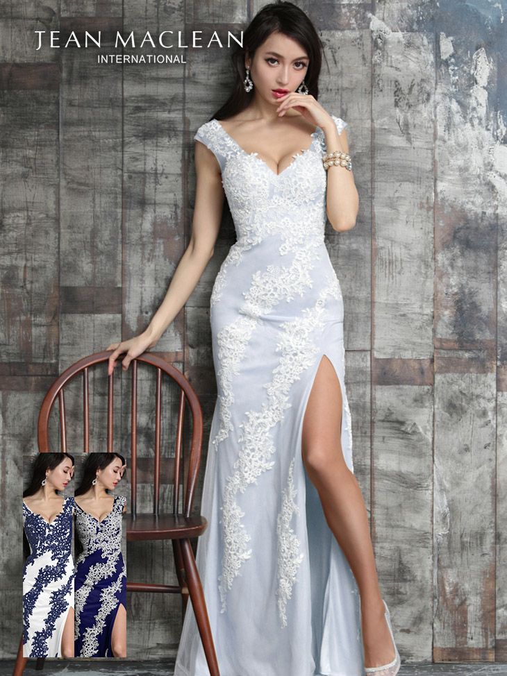 LaLaTulleが選ぶ優雅さ溢れる大人の女性へ格上げするキャバドレス♪ 【JEANMACLEAN/ジャンマクレーン】レース バイカラー タイトロングドレス[4color]