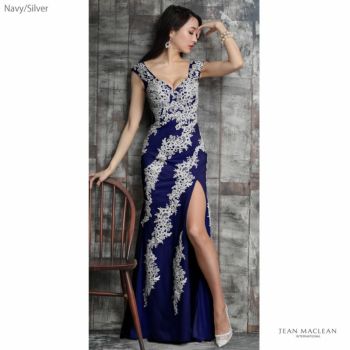 4. 【JEANMACLEAN/ジャンマクレーン】レース バイカラー タイトロングドレス[4color]