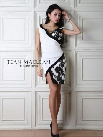 LaLaTulleが選ぶ優雅さ溢れる大人の女性へ格上げするキャバドレス♪ 【JEANMACLEAN/ジャンマクレーン】タック×フラワーレース刺繍 バイカラー タイトミニドレス[アイボリー]