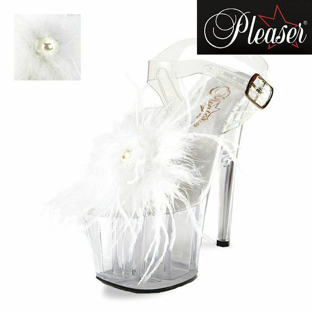 18cmヒール☆海外ブランドのキャバドレスにピッタリなストラップ付き厚底クリアサンダル♪ 【PLEASER/プリーザー】キャバヒール アンクル ストラップ ファー モチーフ 厚底 ハイヒール クリアサンダル[クリア×ホワイト][22.8cm~25.4cm][17cmヒール]