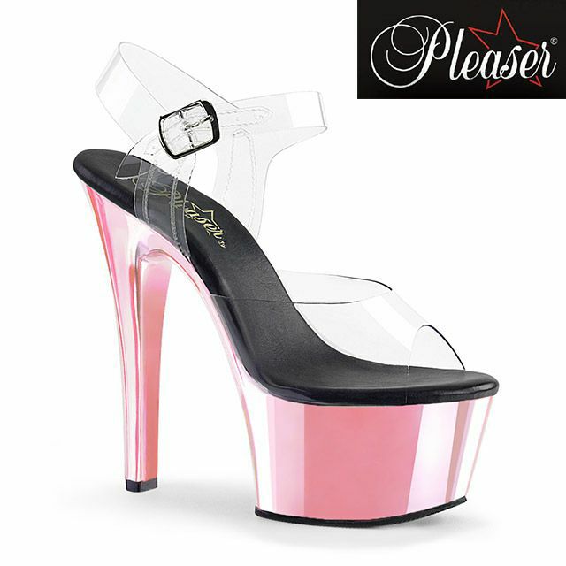 【PLEASER/プリーザー】キャバヒール アンクル ストラップ メタリック ピンク クリア 厚底 ハイヒール キャバ サンダル [ブラック×ベビーピンク][22.5cm~25.4cm][16.5cmヒール]