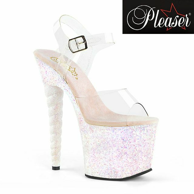 4. 【PLEASER/プリーザー】キャバヒール アンクル ストラップ ラメ 厚底 ハイヒール クリアサンダル [クリア×オパール][22.8cm~25.4cm][18cmヒール]