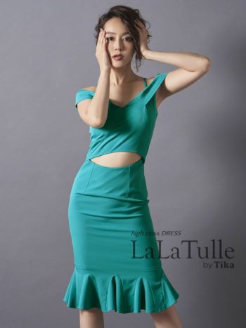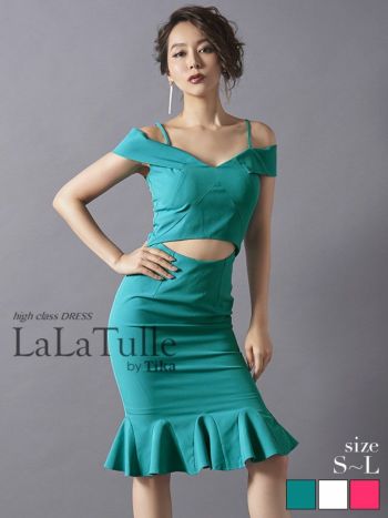 キャバドレス LaLatulle ララチュール お腹あき裾フリルミディドレス(3color)(S/M/L)(青田夏奈 着用)【送料無料】