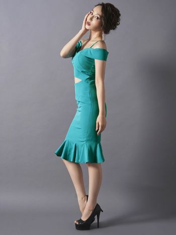 3. お腹あき裾フリル タイトひざ丈ドレス[3color][Lあり][青田夏奈/キャバドレス着用]