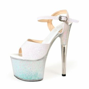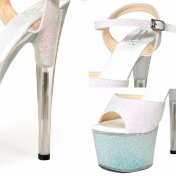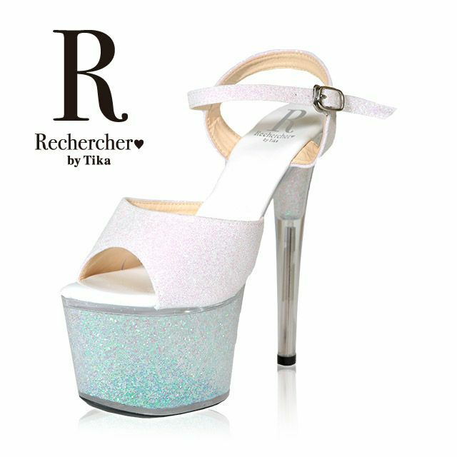 17cmヒール☆キラキラのグリッターラメが可愛いキャバドレスにピッタリなパンプス♪ 【Rechercher/ルシェルシェ】キャバヒール グリッター 厚底 ストラップデザイン ラメ サンダル[ホワイト][22.5cm~25.0cm][17cmヒール]