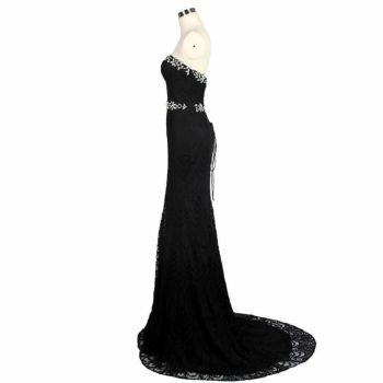 オフショルダー フレアスリーブ総レースタイトロングドレス