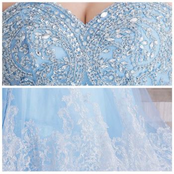 主役のためのプリンセスドレス♪ 【Angel R/エンジェルアール】バースデー オフショルダー アッパービジューヘムフラワーレースAラインロングドレス (AR22101)