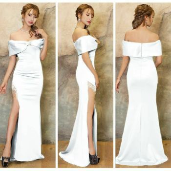 3. 【Angel R/エンジェルアール】シンプル リボン ビジュー オフショルダー タイトロングドレス (AR22848)