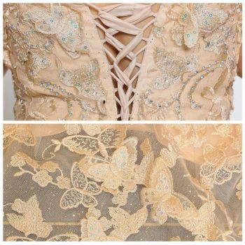 3. 【Angel R/エンジェルアール】オフショルダー バタフライ スパンコール バースデー ビジューAラインロングドレス (AR23102)