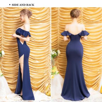 4. 【Angel R/エンジェルアール】肩あき バストビジュー くびれ透け メッシュ スリット セクシー オープンバスト フリル タイトロングドレス (AR24839)