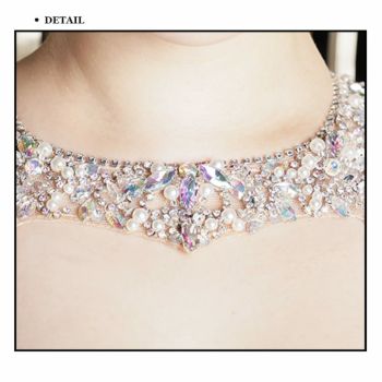 3. 【Angel R/エンジェルアール】セクシー フラワービジューデザイン オープンバスト ホルターネック くびれ透け メッシュ スリット タイトロングドレス (AR24846)