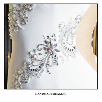 4. 【Angel R/エンジェルアール】セクシー フラワービジューデザイン オープンバスト ホルターネック くびれ透け メッシュ スリット タイトロングドレス (AR24846)