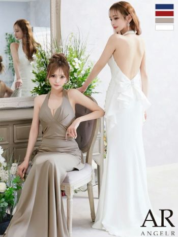 キャバドレス Angel R エンジェルアール バックリボン フリル バストタック ホルターネック バックオープン マーメイドロングドレス