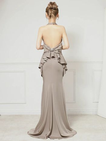 4. 【Angel R/エンジェルアール】ホルターネック バックリボン フリル バックオープン バストタック マーメイドロングドレス(AR25233)