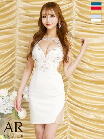 XSあり!大人気カラーが登場♪ 【Angel R/エンジェルアール】オープンバスト くびれ透け アッパーフラワーレース ビジュー セクシー ホルターネック タイトミニドレス (AR24236)