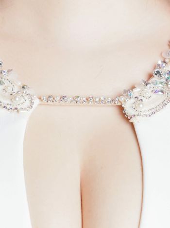 4. 予約商品【1月下旬入荷予定】【Angel R/エンジェルアール】バストタック ビジュー セクシー オープンバスト ホルターネック ネックチェーン タイトミニドレス (AR24240)