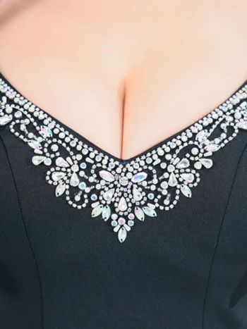XSあり!キラキラビジューが華やかにデコルテに♪ 【Angel R/エンジェルアール】くびれ透け ビジュー Vカット リボンショルダー ドット柄 ノースリーブ タイトミニドレス (AR24251)