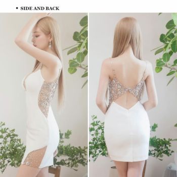 3. 【Angel R/エンジェルアール】オープンバスト バックビジュー メッシュ キャミソール くびれ透け セクシー タイトミニドレス (AR24827)