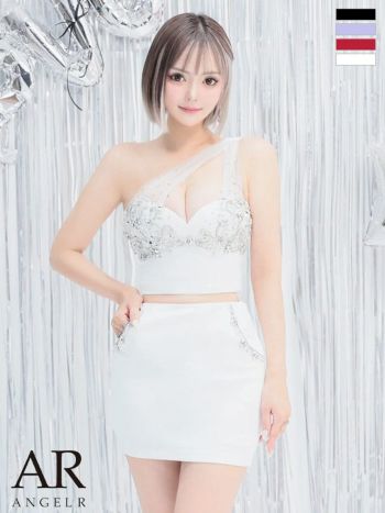 3. 【Angel R/エンジェルアール】ワンショルダー バストビジュー ポケット セットアップ セクシー オープンバスト タイトミニドレス (AR24848)