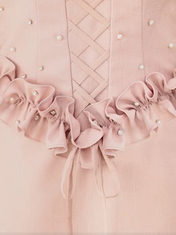 3. 【Angel R/エンジェルアール】ベア ノースリーブ フリルデザイン レースアップ ビジュー ガーリー オープンバスト 2way フレアミニドレス (AR25214)