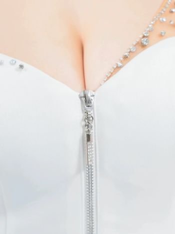 3. 【Angel R/エンジェルアール】オープンバスト ワンショルダー ジップデザイン バックビジュー くびれ透け セクシー タイトミニドレス (AR25302)