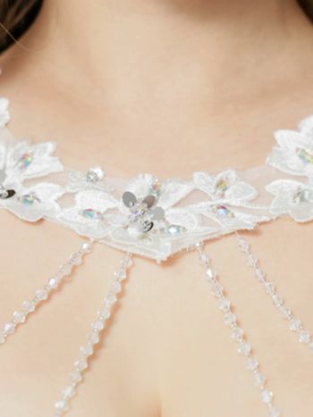 4. 【Angel R/エンジェルアール】パール ビジュー ホルターネック フラワーレース メッシュ タイトミニドレス (AR25331)