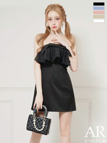 キャバドレス Angel R エンジェルアール フェミニン 2way ベアトップ キャミソール パールチェーン フリル リボン ビジュー フレアミニドレス