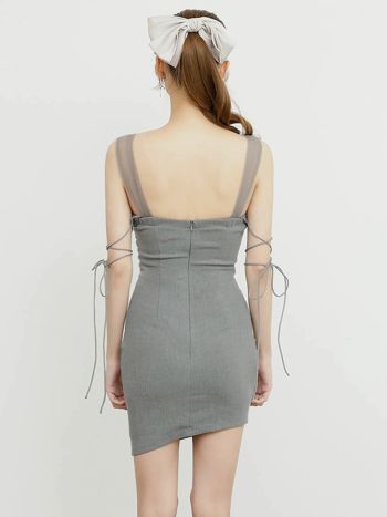 4. 【Angel R/エンジェルアール】リボン サイドカット タック メッシュ シンプル ノースリーブ タイトミニドレス (AR25859)