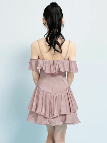 3. 予約商品【1月下旬入荷予定】【Angel R/エンジェルアール】バストカット ビジューチェーン フリル シフォン オフショルダー 肩あき フレアミニドレス (AR26806)
