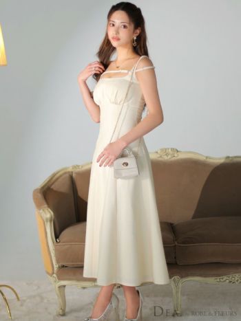 3. 【DEA.by ROBE de FLEURS/ディア】エレガント ワンカラー サマーツイード ノースリーブ デコルテライン フレアロングドレス(DE2994)