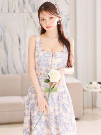 4. 【DEA.by ROBE de FLEURS/ディア】ジャガード ジップデザイン ノースリーブ シンプル ワンピース フレアロングドレス(DE3334)
