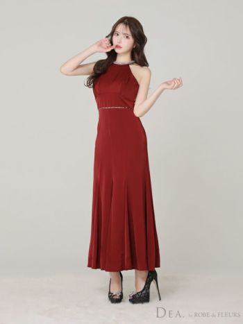 3. 予約商品【2月上旬入荷予定】【DEA.by ROBE de FLEURS/ディア】ビジュー バックオープン エレガント サテン ホルターネック Aラインロングドレス(DE3505)