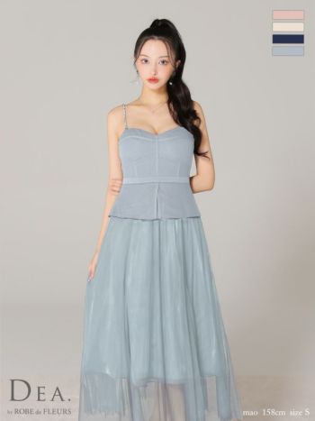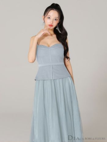 Lあり!透け感のあるスカートがセクシー★ 【DEA.by ROBE de FLEURS/ディア】キャミソール ペプラム チュール エレガント オープンバスト Aラインロングドレス (DE3534)