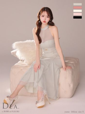 キャバドレス DEA.by ROBE de FLEURS ディア ホルターネック バックリボン チュール エレガント シースルー Aラインロングドレス
