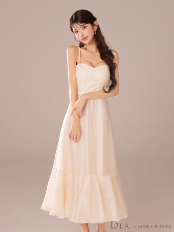 4. 【DEA.by ROBE de FLEURS/ディア】オープンバスト キャミソール シフォン ベルトデザイン エレガント Aラインロングドレス (DE3752)