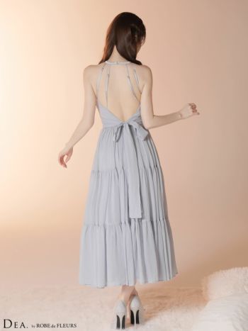 4. 【DEA.by ROBE de FLEURS/ディア】ホルターネック ティアードスカート シフォン キーホールカット バックオープン リボン ラメ Aラインロングドレス(DE4145)
