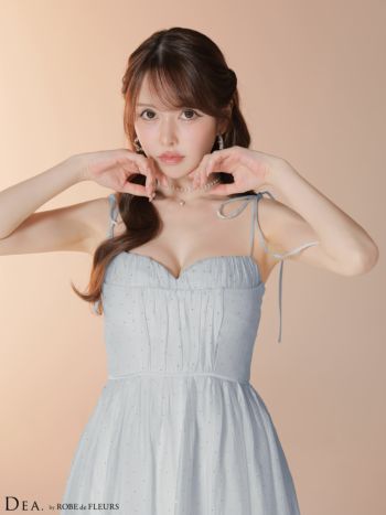 3. 予約商品【1月中旬入荷予定】【DEA.by ROBE de FLEURS/ディア】シフォン Aラインキャミソール ハートカット ストーン付き ロングドレス(DE4147)