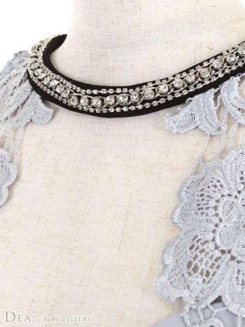 XS~Lあり!周囲の視線を独り占め♪ 【DEA.by ROBE de FLEURS/ディア】リッチ リボンベルトデザイン 袖フラワー刺繍レース 肩あき バイカラー切替 タイトミニドレス(DE1735)