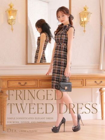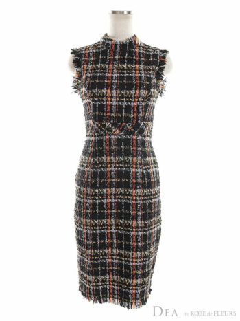 4. 【DEA.by ROBE de FLEURS/ディア】美麗 ツイード フリンジ ノースリーブ タイトひざ丈ドレス(DE2706)
