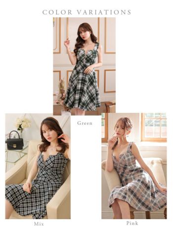フロントジッパーが特徴的なフレアラインの高級キャバドレス♪ 【DEA.by ROBE de FLEURS/ディア】キュート ツイード フロントジップ ノースリーブ フレアひざ丈ドレス(DE2801)