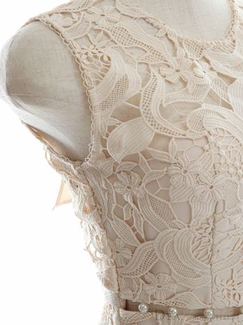4. 【DEA.by ROBE de FLEURS/ディア】ウエストパール 総レース マーメイドワンピース ノースリーブ タイト ひざ丈ドレス(DE2809)