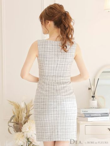 4. 【DEA.by ROBE de FLEURS/ディア】リッチ スーパーストレッチバストカット ノースリーブ ツイード タイトひざ丈ドレス(DE3203)