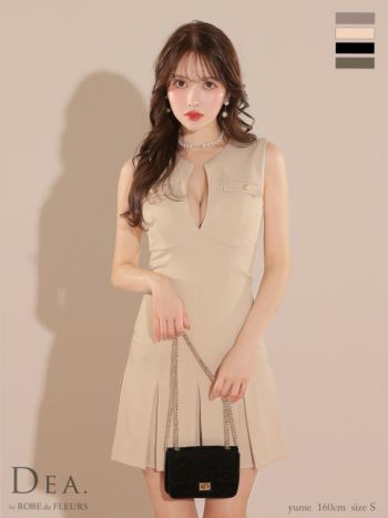 4. 【DEA.by ROBE de FLEURS/ディア】バストカット ノースリーブ プリーツ シンプル ゴールドボタン フレアミニドレス (DE3744)
