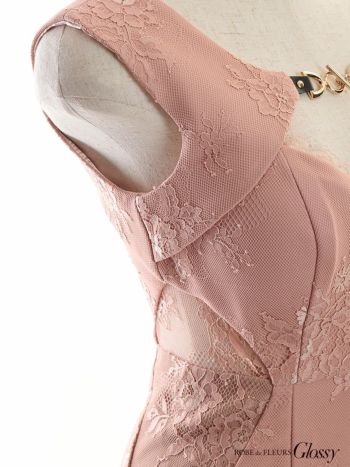 4. 【Glossy by ROBE de FLEURS/グロッシー】フロントロックデザイン サイドスリット 刺繍レース タイトロングドレス(gl2498)