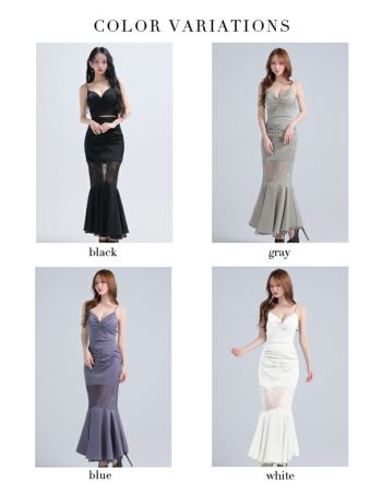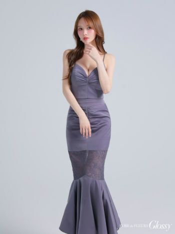 4. 【Glossy by ROBE de FLEURS/グロッシー】サテン レース セットアップ キャミソール マーメイドロングドレス (GL4110)